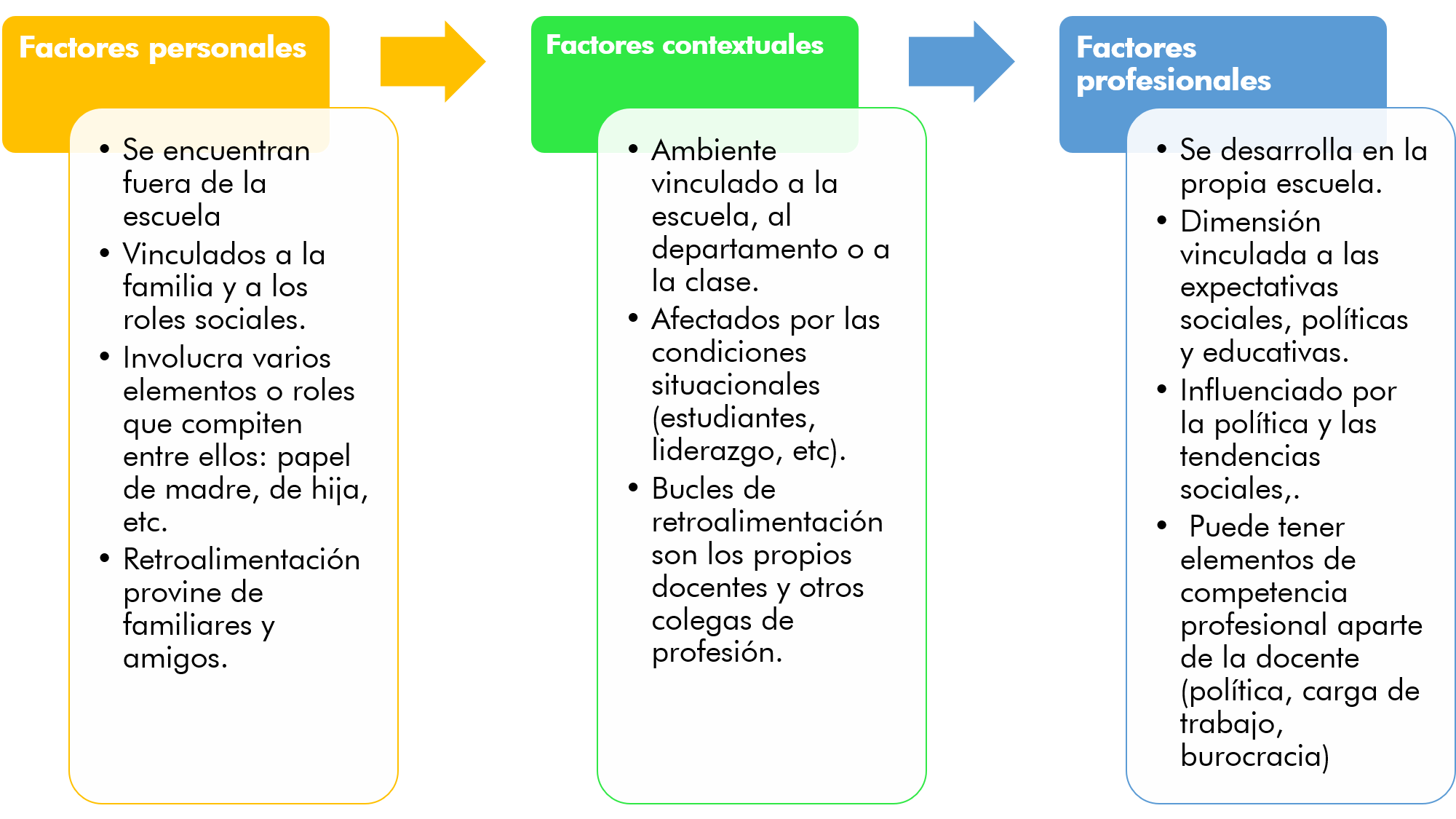 De igual manera, la identidad profesional contribuye a la percepción de autoeficacia, motivación, compromiso y satisfacción en el trabajo del docente; influenciada por aspectos personales, sociales y cognitivos.