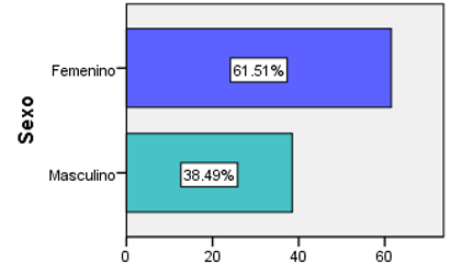 En relación al sexo el 38.4% de los participantes son del sexo masculino y el 61.5% son del sexo femenino, lo que indica que en su mayoría son mujeres (figura 2).