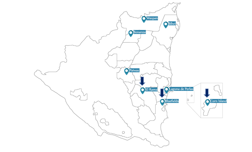 Ilustración 1. Sedes de la Bluefields Indian & Caribbean University (BICU)
