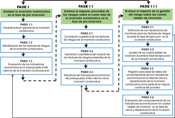 Las fases de la modelación de procedimiento para la gestión del riesgo económico en el costo total en inversiones constructivas