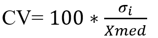 En la medida que el valor del CV aumenta, mayor resulta la heterogeneidad de los valores de las variables correspondientes a cada ítem del cuestionario que se realiza. Según lo planteado por Quezada (2019) los valores de este coeficiente serán aceptables si resultan menores al 25 %. El coeficiente se determina por la expresión (3)