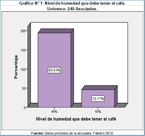 El 46% afirma que entrega café pergamino oreado al realizar el acopio y un 11 a 12% en pergamino seco de humedad aplican para la exportación (Grafico No.1). Los asociados de la cooperativa El Gorrión no logran cumplir el nivel de humedad exigido debido a la variación del cambio climático, en días lluviosos en donde el grano de café no logra secarse en tiempo y forma, esto influye a que el productor obtenga un bajo precio cuando entrega el café a la cooperativa, porque se hacen deducciones de peso por cada quintal que entrega.