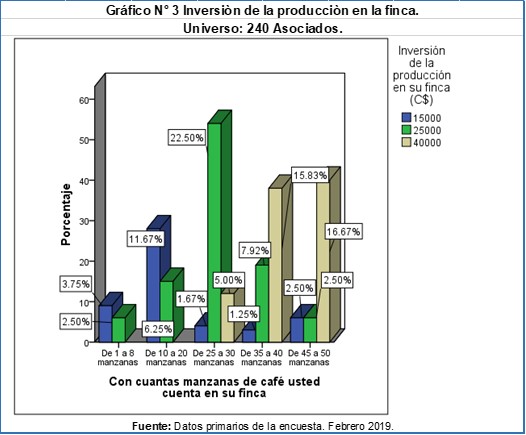 Entre más manzanas de café tenga el asociado mayor será el gasto tomando en cuenta que tendrá que contratar un mayor número de trabajadores para la recolecta de frutos, también podrá invertir en plantaciones nuevas en caso que estas se vean afectadas por plagas. En cambio, los que tienen un menor número de manzanas invertirá menos en mano de obra, fertilizantes, fumigaciones, etc.