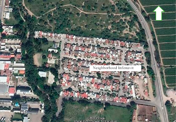 As a study area, three representative colonies of Autlán (Infonavit, Villas Taurinas, and Valle del Vergel) were taken for sampling. These neighborhoods are characterized by having low-income housing and, consequently, small living spaces. See figures 1, 2, and 3.